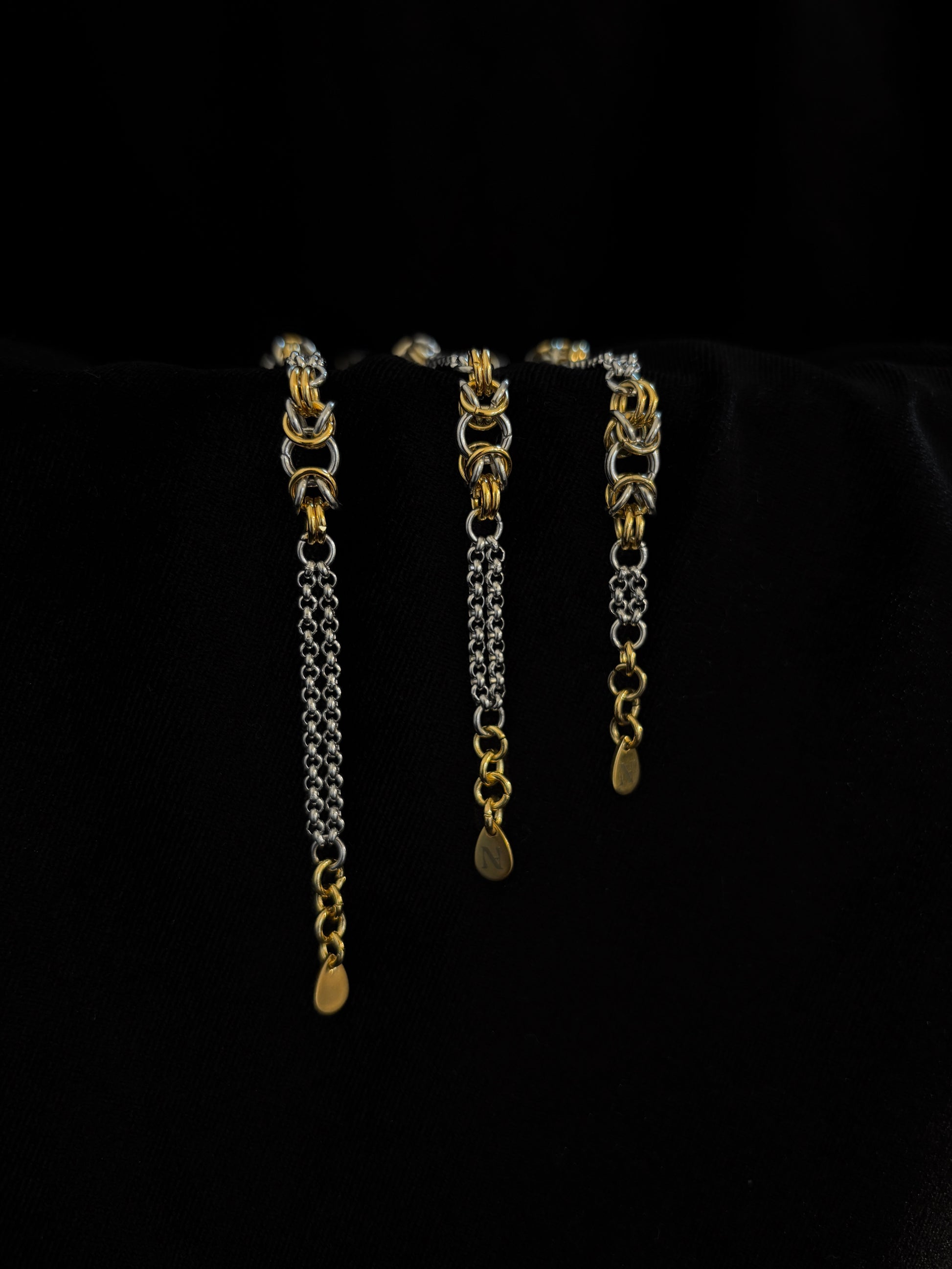 D’une élégance discrète, Andromède se compose de plusieurs maillages byzantins finement travaillés et reliés par des chaînes fines et aériennesSon design subtil, évoque le cours de la vie : entre fluidité et entrelacement, mais surtout harmonie. Chaque maillon et chaque lien incarnent une étape ou un moment clé, formant un tout, de fil en aiguille.
